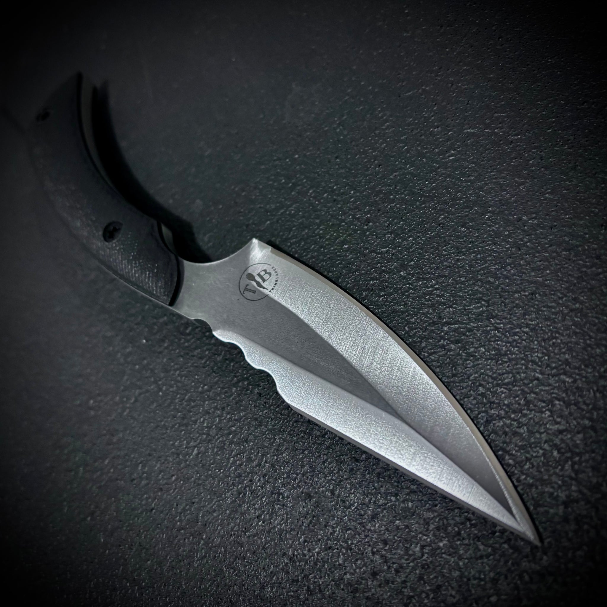 The Half-Cut…. 3/16 stock NitroV at 60-61HRC, epoxy soaked cord wrap. 3.7 inch double edged blade. 7.5 inches overall. Comes ambi carry with ulticlip . Double edged EDC.