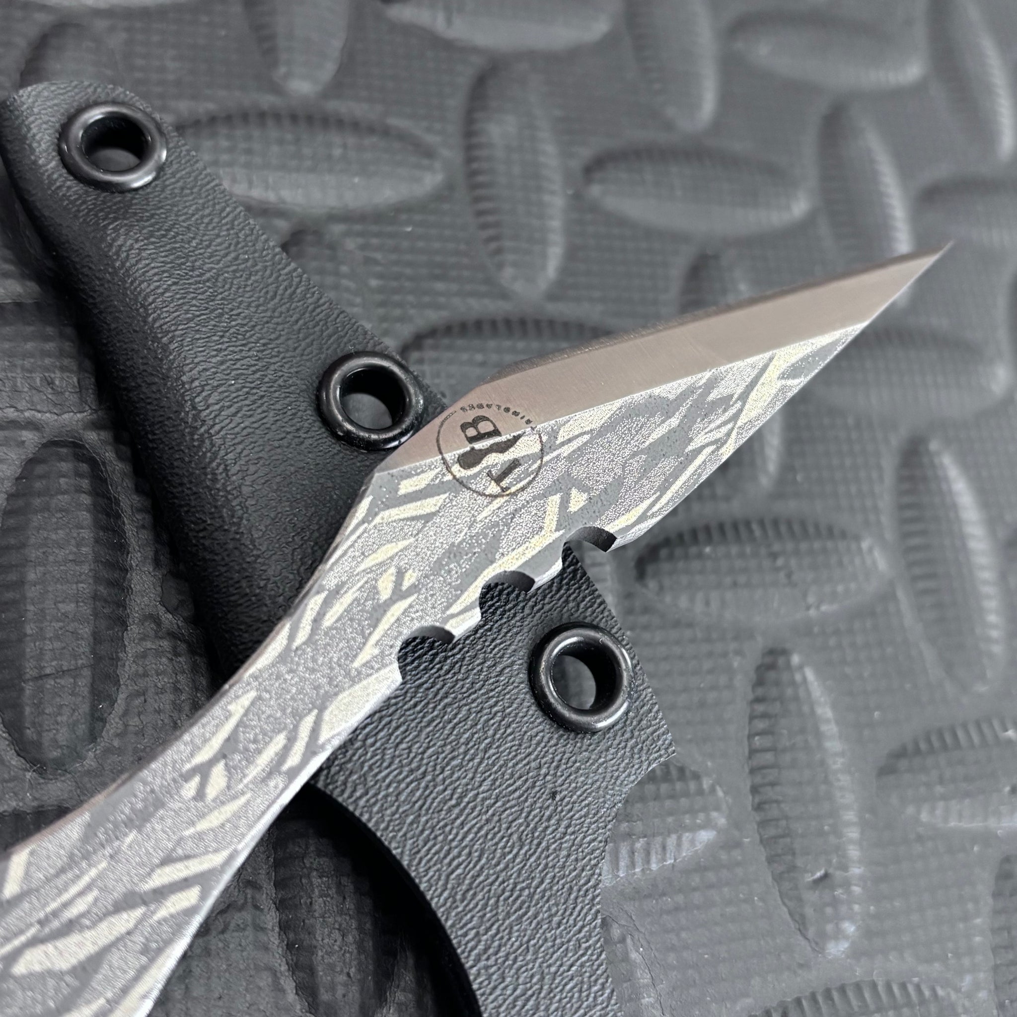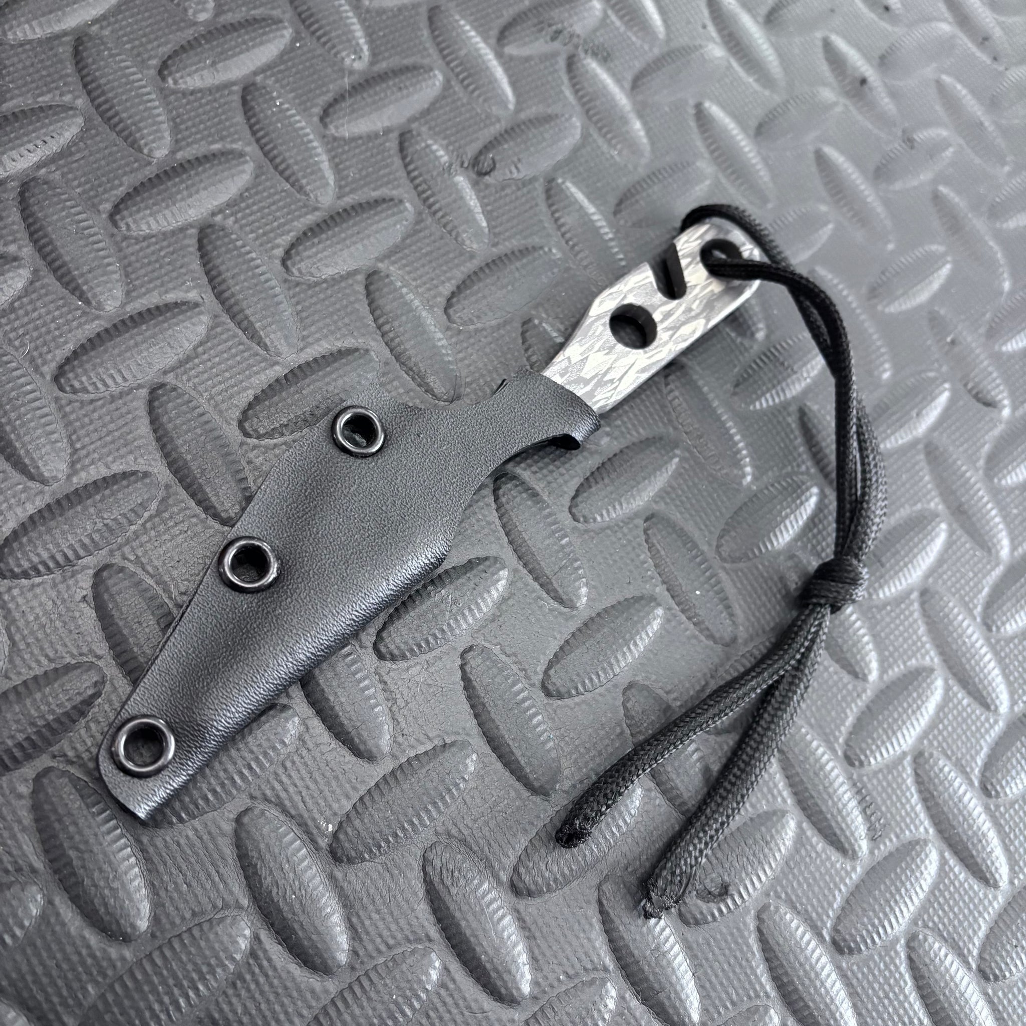 Compact chisel ground kiridashi type blade with bottle opener . 6.3 inches with a 1.8 inch blade. 3/16 stock NitroV stainless. Comes with paracord . 2.9 Oz with sheath. Great all around edc utility blade and emergency beer opener.